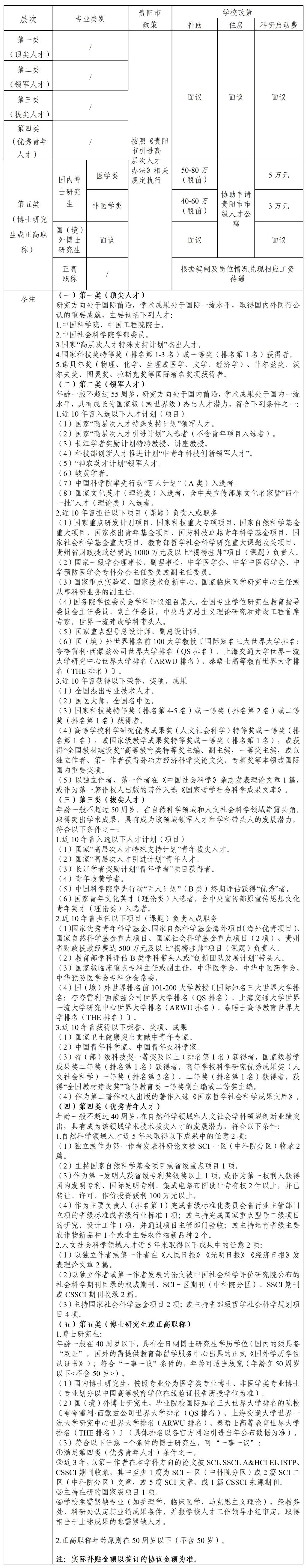 *注:相关补贴按照贵阳市人才引进政策执行